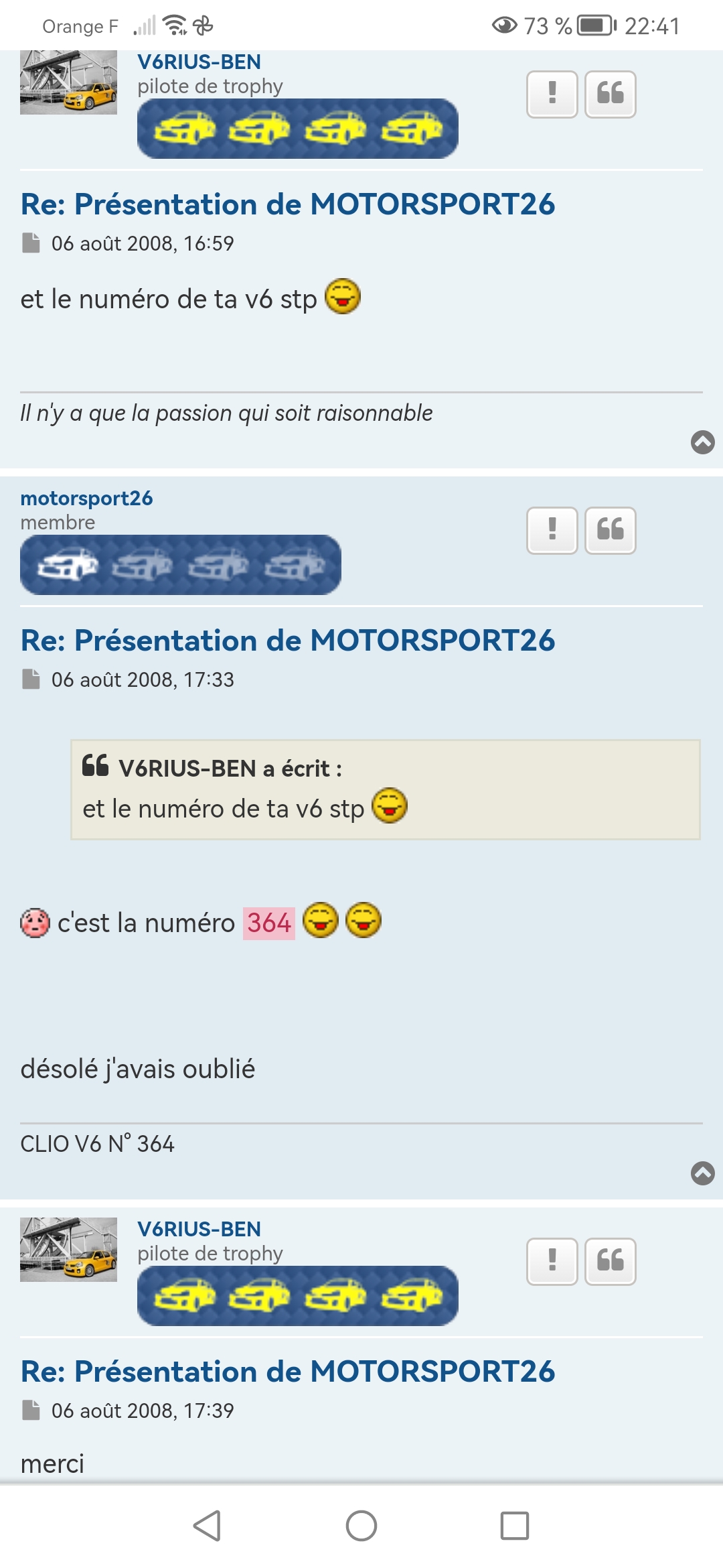 En te souhaitant bonne route au volant de ta V6 et au plaisir de faire connaissance lors de nos sorties :wink: