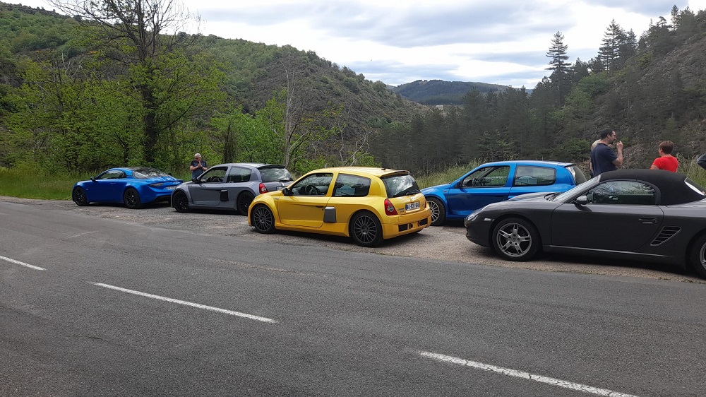 10 voitures venues des 4 coins de France se sont retrouvées à Meyrueis pour découvrir cette région montagneuse et à l'occasion venir brûler quelques litres de 98 ::drive