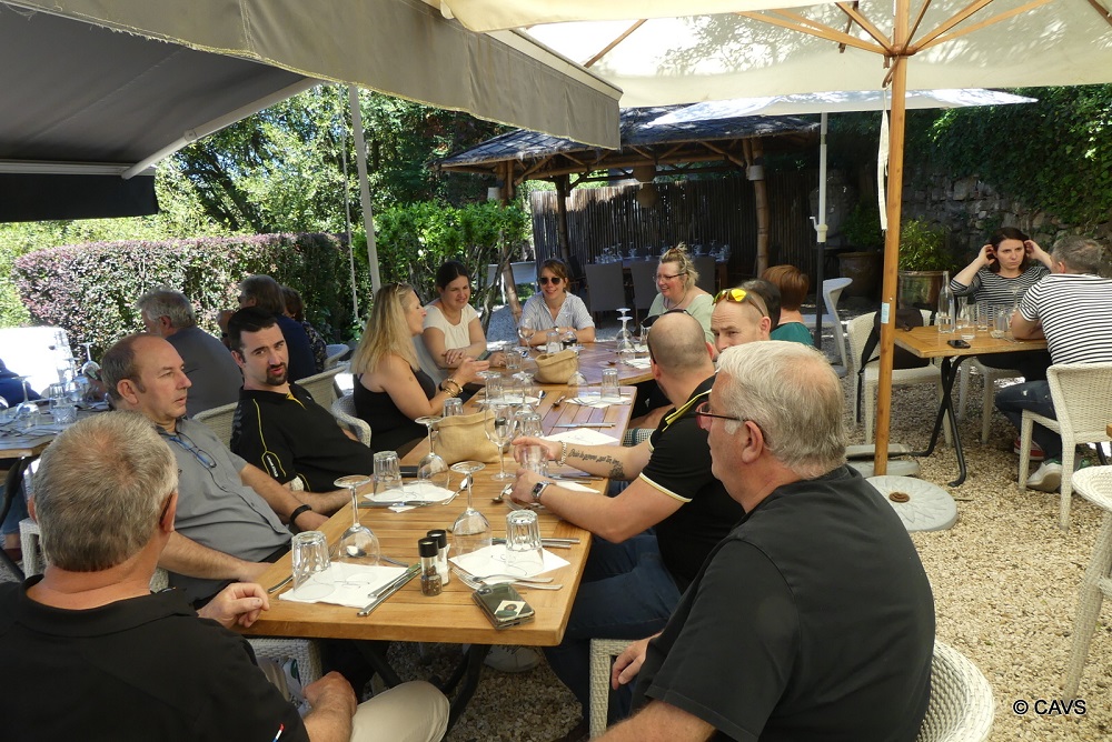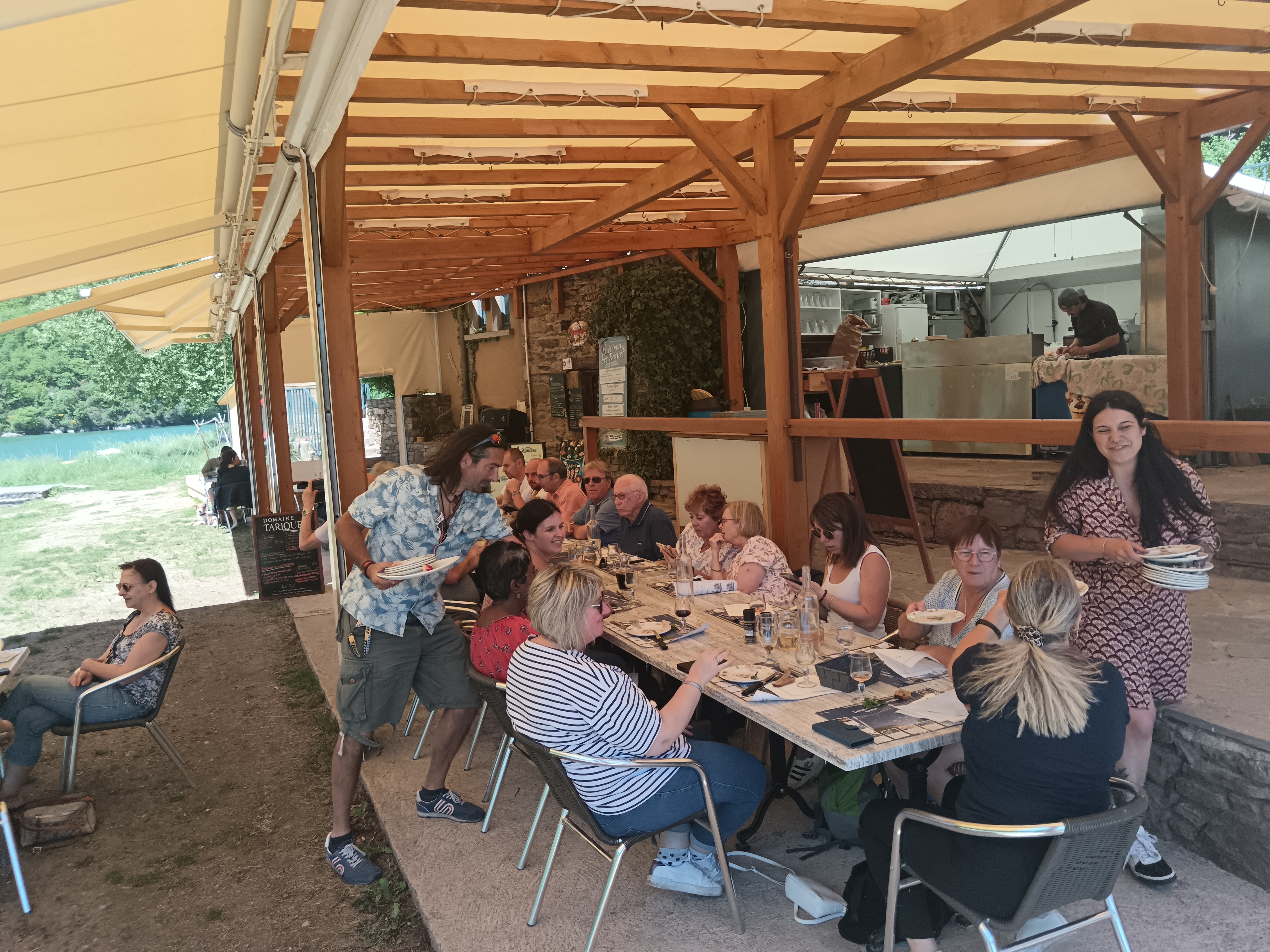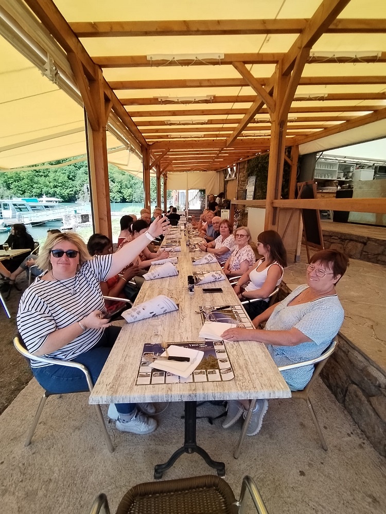 Repas de vendredi midi au restaurant Le Héron des Raspes au bord du barrage de Pinet le long du Tarn .