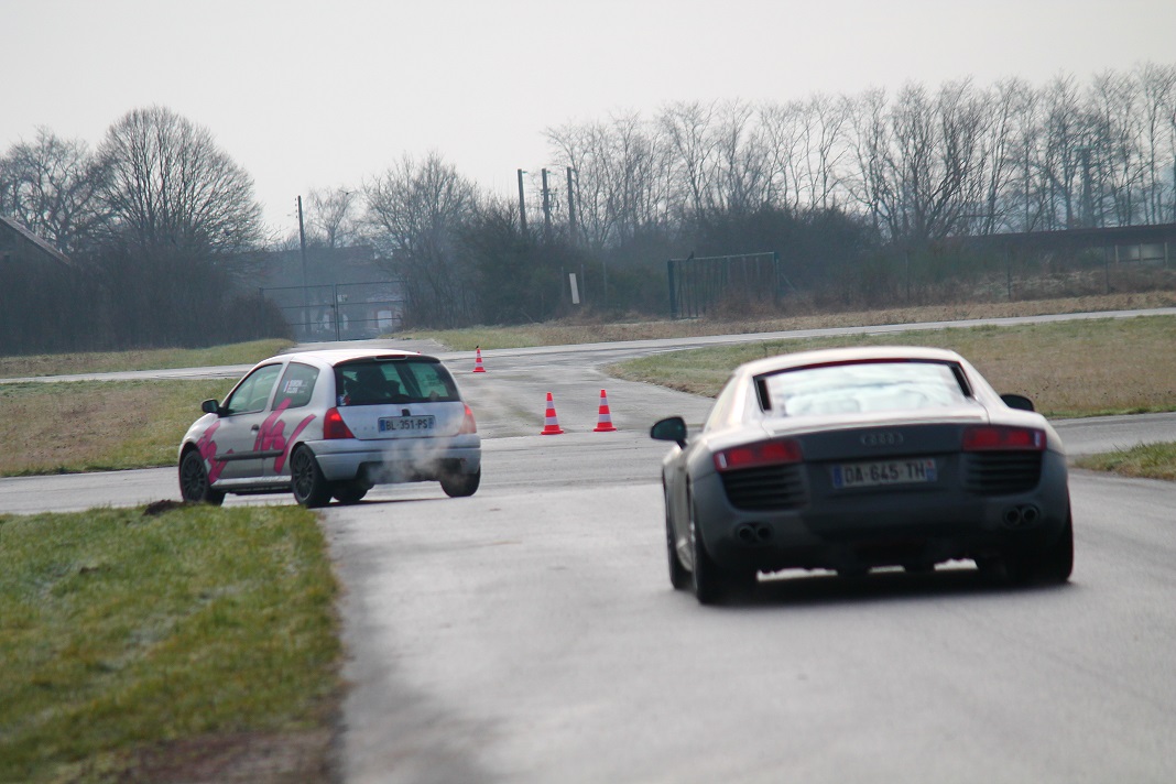 , une r8, une belle Jaguar, des bmw tueuses de grenouilles et drifteuses à souhait, de belles Porsche aussi (même que quand c'est gras, nos autos à 3000 balles font l'affaire), deux méganes, dont une grise avec un toit noir dont le propriétaire critique les voitures tunées qui n'a pas hésité à visiter les bas-côtés
