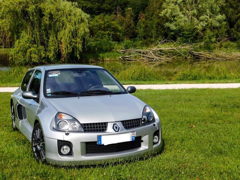 Après plusieurs années en Renault Sport ...Twingo RS, puis Clio 2 RS 182, Clio 2 RS TROPHY ... Et parce que jamais 2 sans 3, une Clio V6 ph2 255 - 2003 - gris titane - 54000 km en ma possession depuis 1 semaine.