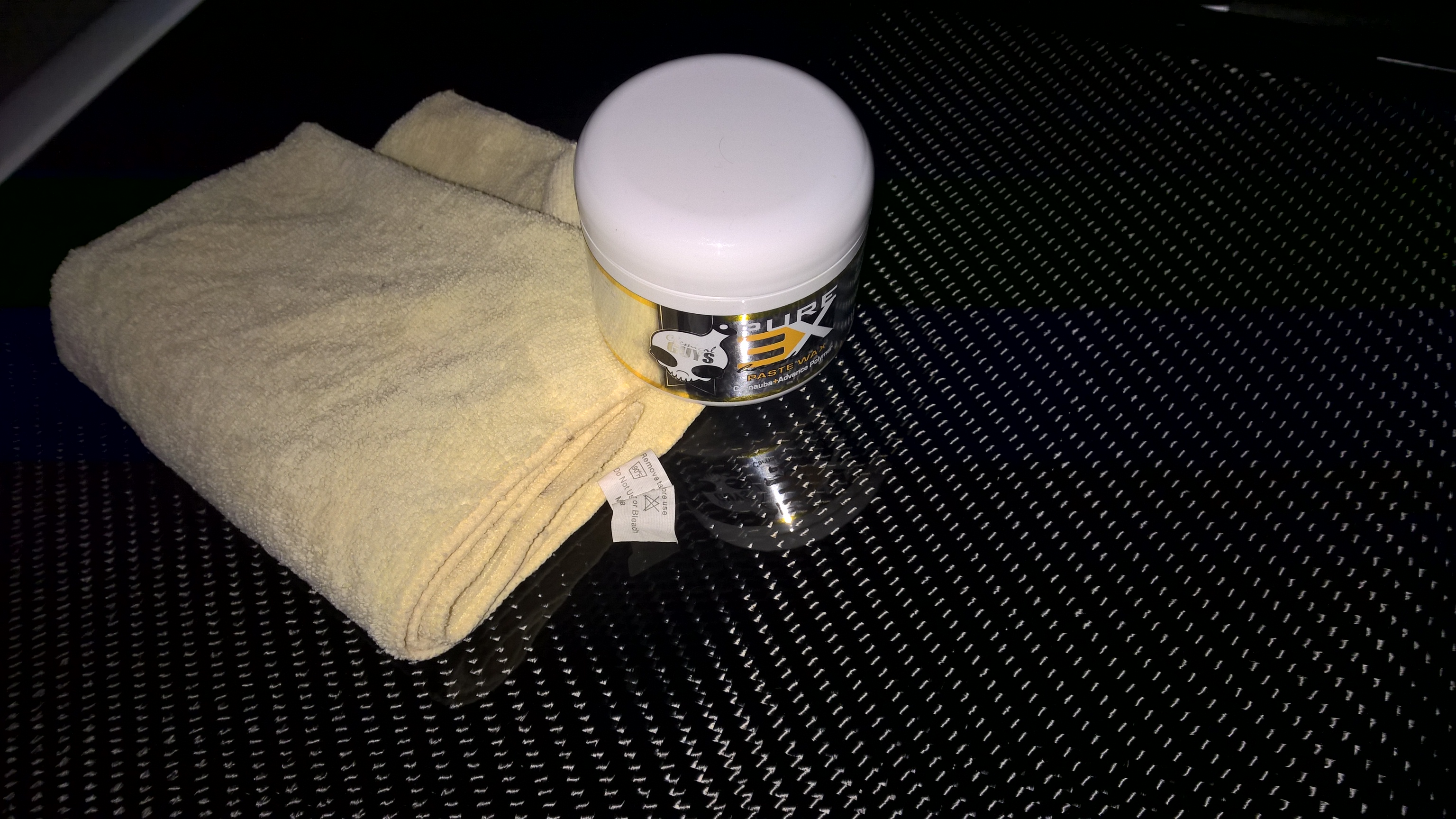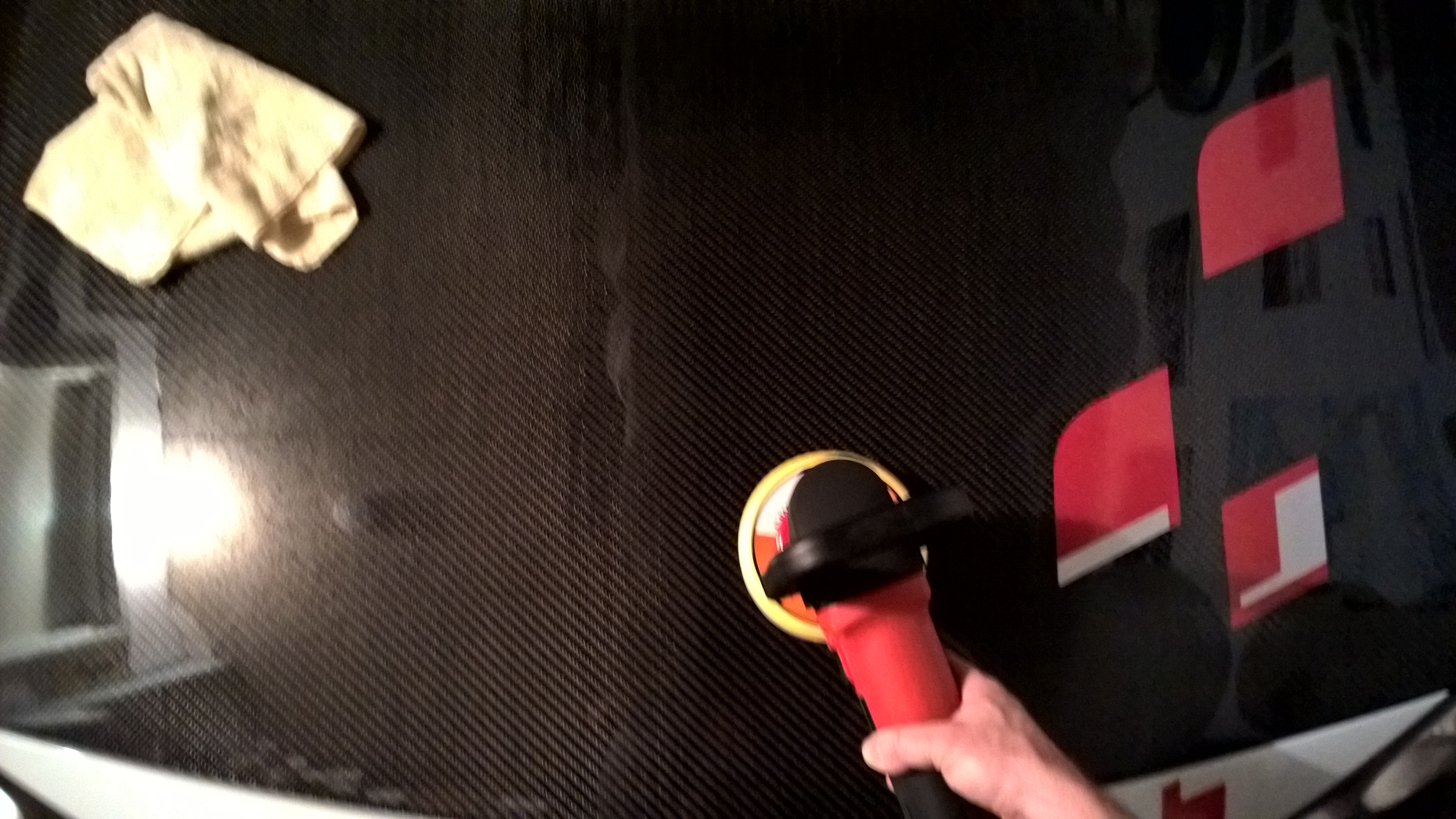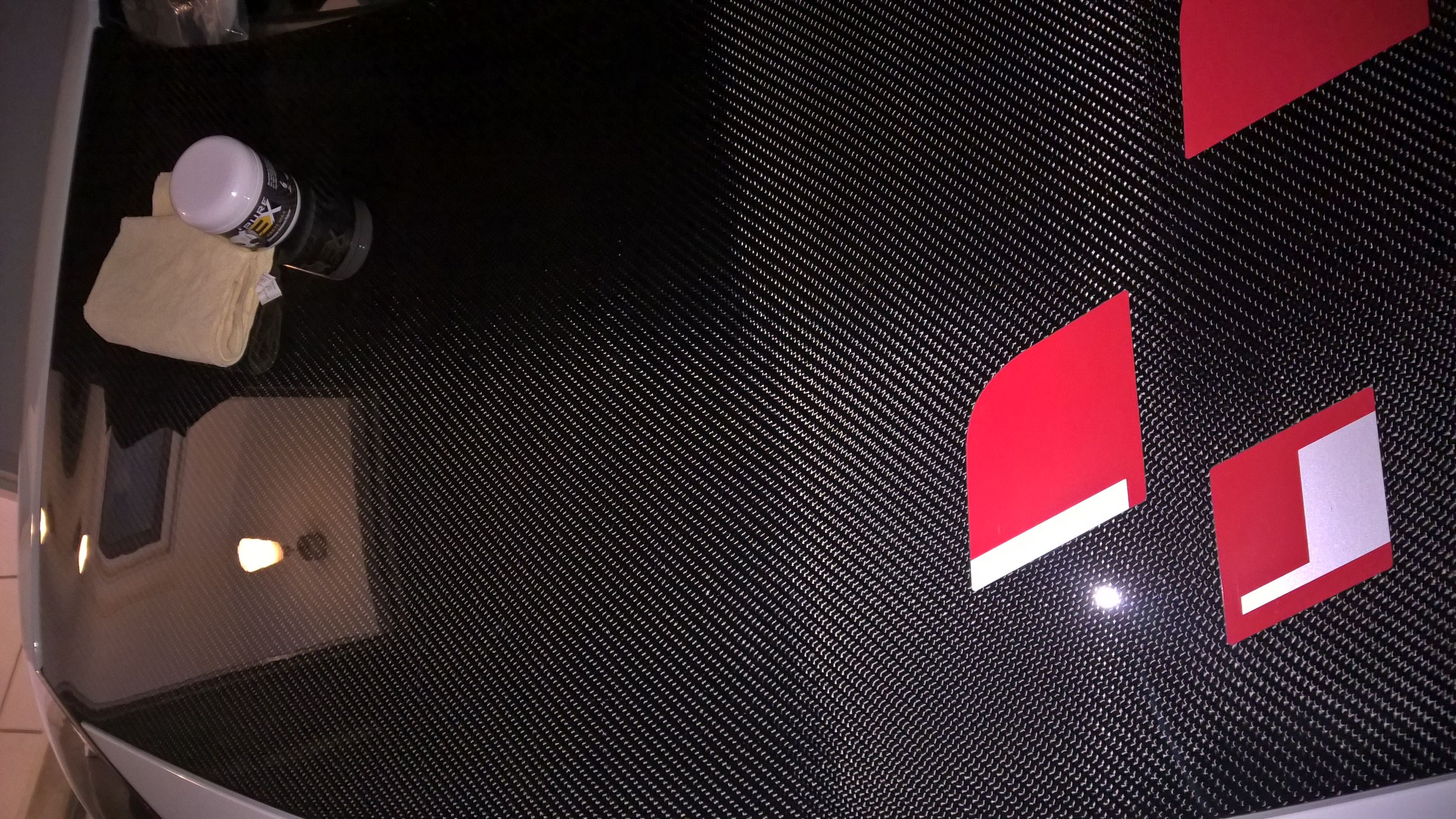 Petit nettoyage et polissage puis cirage du capot carbone.